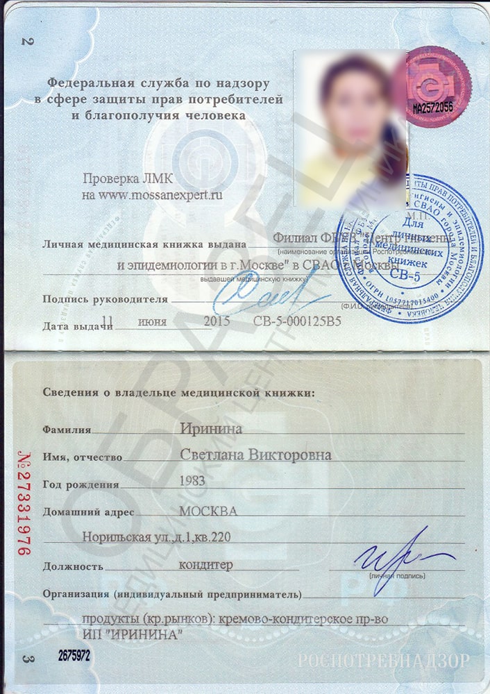 - При изготовлении медицинской книжки в городе Москве официально используются бланки с печатями, подписями медиков, с подробными заключениями. Содержание соответствует установленным стандартам.